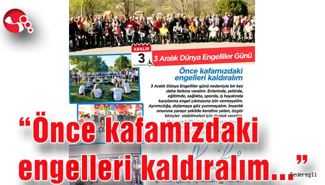 “3 Aralık Dünya Engelliler günü nedeniyle bir kez daha farkına varalım. Evlerinde, şehirde, eğitimde, sağlıkta, sporda, iş hayatında karşılarına engel çıkmasına izin vermeyelim.